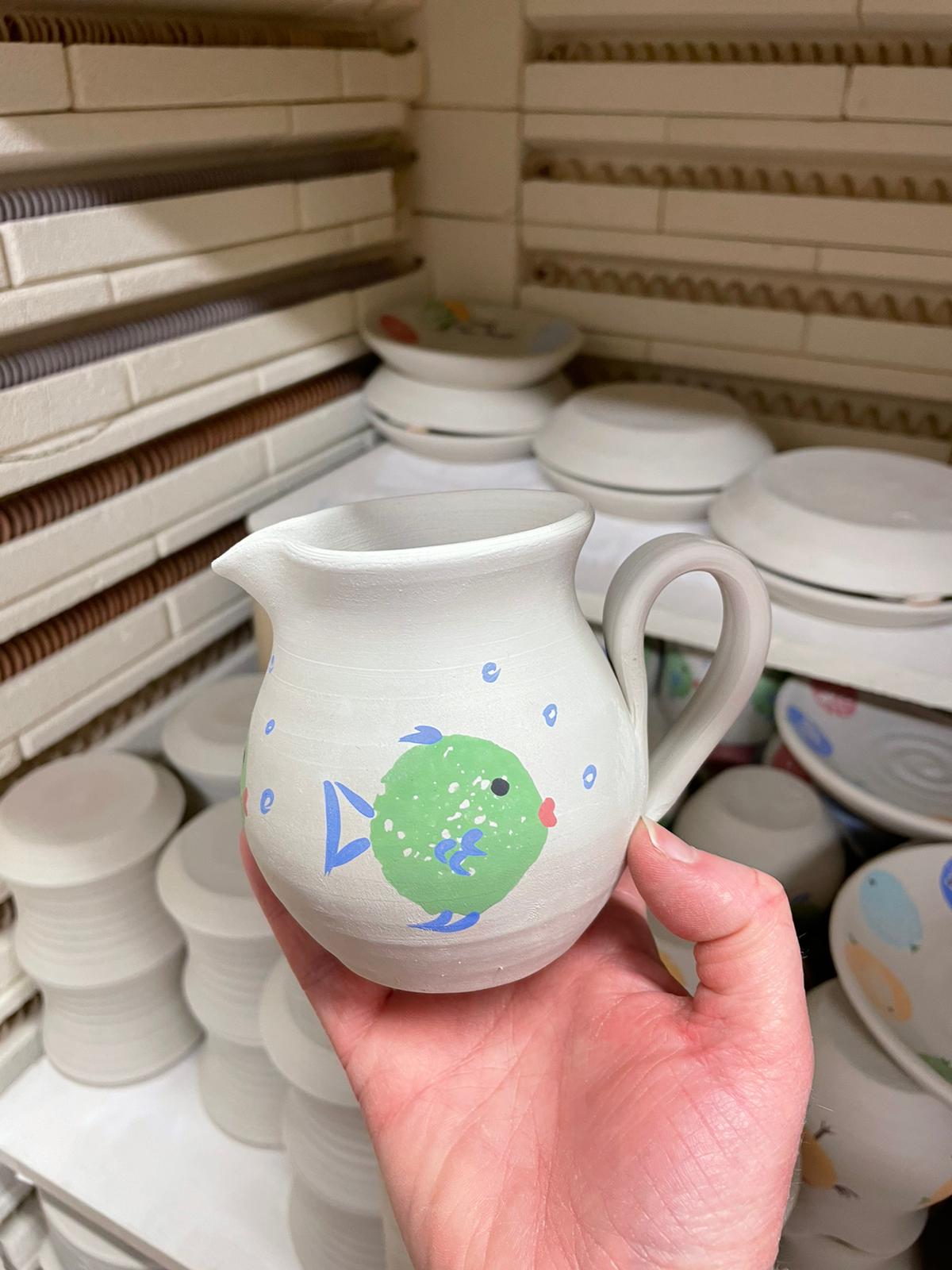 Bring a splash of the sea to your kitchen with these fish jugs! Each one is handmade & painted by Orla meaning no two jugs are exactly alike. The chunky, smiling fish swimming around the sides give them a gorgeous, quirky character. Whether you use them for pouring cream, serving sauces or simply as beautiful decorative pieces.